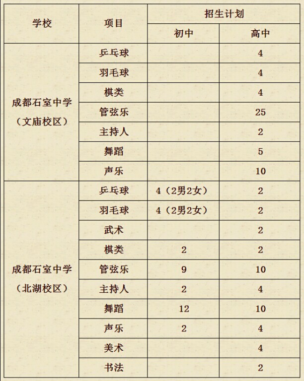 【查看原帖并参与讨论:成都石室中学2014年初、高中艺体特长生?及招生办法?】